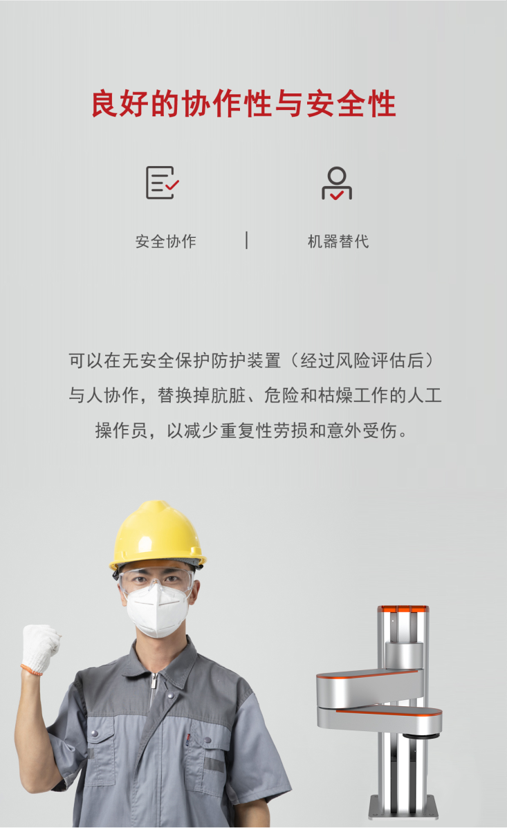 - 支持碰撞檢測(cè)、拖動(dòng)示教、硬急停、調(diào)試/在線(xiàn)升級(jí)(USB口)