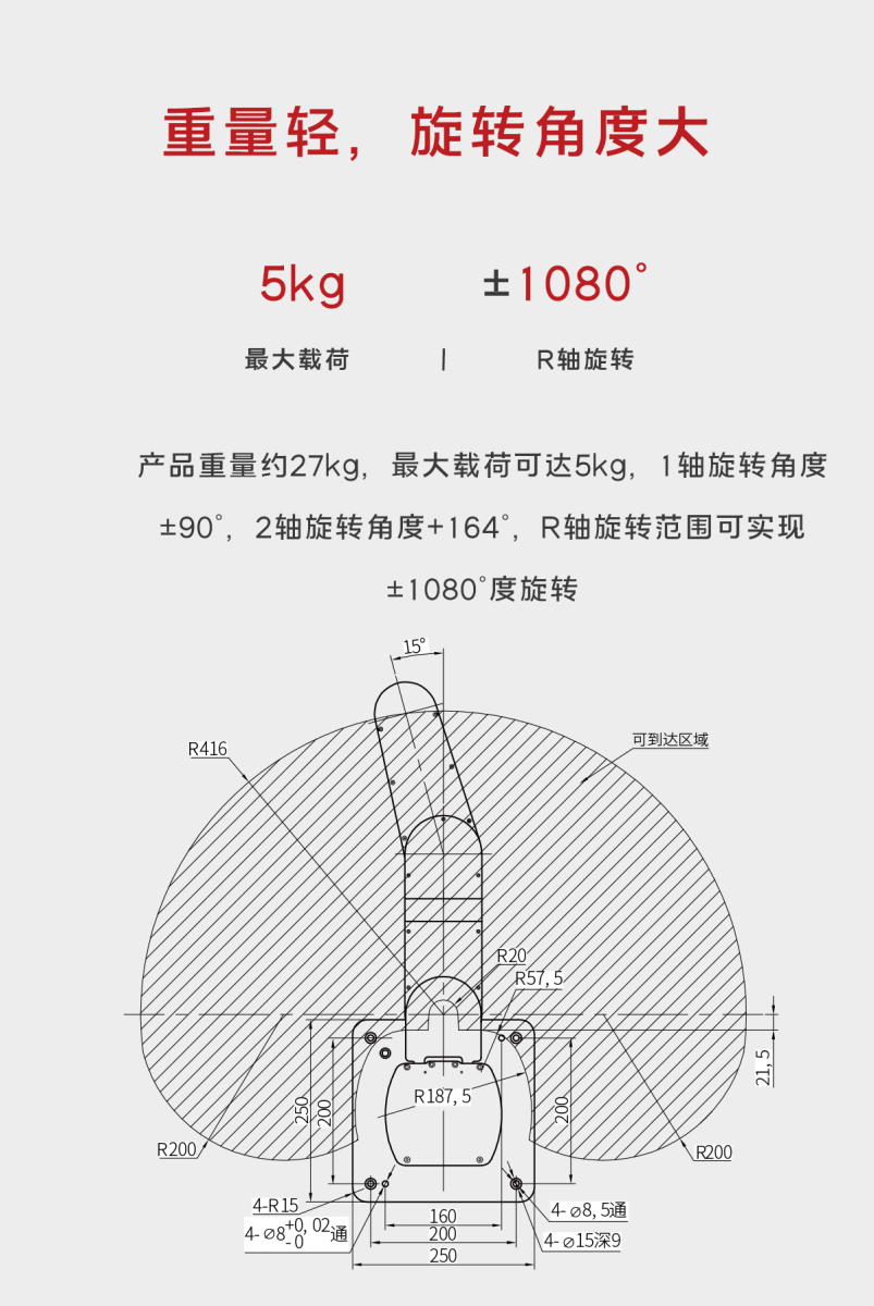 | R軸旋轉(zhuǎn)范圍 | ±1080°無機(jī)械限位/±170°有機(jī)械限位 |