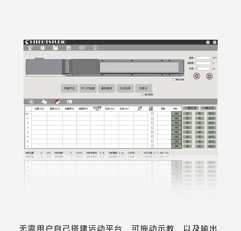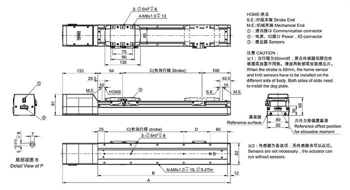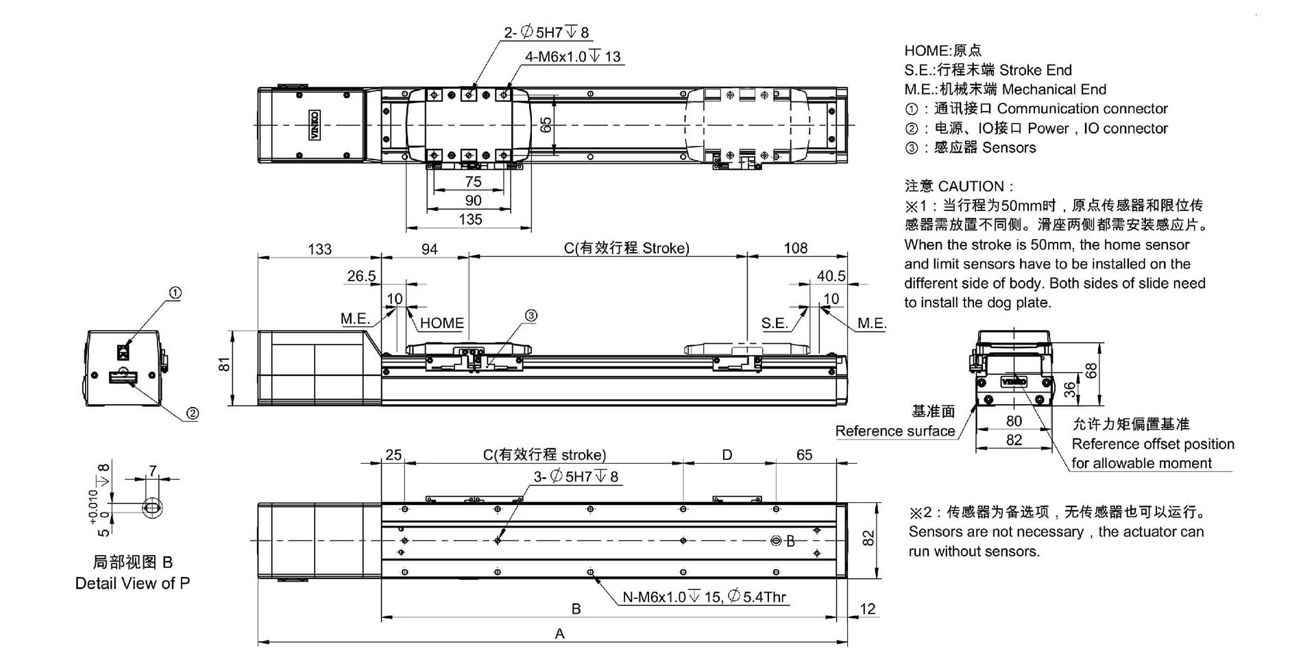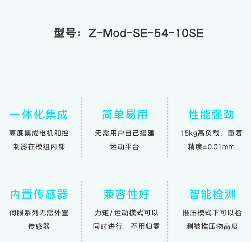 2021年11月11日 pruce 智能電缸 0 Z-Mod-SE-54-10SE 首頁 / 智能電缸 / Z-Mod-SE-54-10SE 播放視頻 電機功率/電壓:100W/DC24V額定扭矩:0.32N.m重復定位精度:±0.01mm行程范圍:50-800mm(50mm間隔)馬達額定轉速: 3000RPM 下載3D模型 下載產品手冊 播放視頻 電機功率/電壓:100W/DC24V額定扭矩:0.32N.m重復定位精度:±0.01mm行程范圍:50-800mm(50mm間隔)馬達額定轉速: 3000RPM 下載3D模型 下載產品手冊 產品描述 資料下載 產品描述 Z-Mod-SE-54-10SE 核心參數?100W0.32N.mDC伺服電機功率額定扭矩50~800mm3000PRM行程范圍馬達額定轉速*線框尺寸圖規格參數?型號性能電機功率/電壓100W/DC24V額定扭矩( N.m )0.32N·m滾珠絲杠導程(mm)51020最高速度(mm/sec)2505001000額定加速0.3G0.3G0.3G最大可搬重量(水平/壁掛)(kg)303030垂直1052.5額定推力(N)361.7180.990.5行程范圍50-800mm(50mm間隔)馬達額定轉速(RPM)3000注: 1G=9800mm/sec2通用規格重復定位精度±0.01mm驅動方式滾珠絲杠φ12mm轉造C7級動態容許力矩(注1)Ma:13.8N.m, Mb:13.8N.m, Mc:20.2N.m負荷允許伸出長度300mm以下傳感器①-LS, ②HOME, ③+LS, NPN, 24VDC感應器線纜長度2m基座材質擠壓鋁型材,白色光澤安裝面積精度要求平面度0.05mm以下使用環境0-40℃, 85%RH(不結霜)注1:行走壽命為10000km時的數值尺寸圖代號說明 ? 質量; 單位:mm有效行程50100150200250300350400450500550600650700750800A199249299?349?399?449?499?549?599?649?699749?799?849?899?949?B?190?240?290?340?390?440?490?540?590?640?690?740?790?840?890?940?C?50?100?150?200?250?300?350?400?450?500?550?600?650?700?750?800?D?25?75?25?75?25?75?25?75?25?75?25?75?25?75?25?75?F?1?1?2?2?3?3?4?4?5?5?6?6?7?7?8?8?N?6?6?8?8?10?10?12?12?1414?16?16?18?18?20?20?質量(kg)?2.1?2.25?2.4?2.55?2.7?2.85?3?3.15?3.3?3.45?3.6?3.75?3.9?4.05?4.2?4.35 資料下載 ?點擊下載產品手冊點擊下載3D圖點擊下載運動范圍圖 Z-Mod-SE-54-10SE 核心參數 產品詳細參數 電機功率/電壓 100W/DC24V 額定扭矩(N·m) 0.32 滾珠絲杠導程(mm) 5 10 20 最高速度(mm/sec) 250 500 1000 額定加速度(※1) 0.3G 0.3G 0.3G 最大可搬重量 水平/壁掛(kg) 30 15 10 垂直 10 5 2.5 額定推力(N) 361.7 180.9 90.5 行程范圍 500-800 (50間隔) 馬達額定轉速(RPM) 3000 注:1G=9800mm/sec2。 重復定位精度 ±0.01mm 驅動方式 滾珠絲杠Φ12mm轉造C7級 動態容許力矩(注1) Ma:13.8N·m,Mb:13.8N·m,Mc:20.2N·m 負荷允許伸出長度 300mm以下 傳感器 ①-LS,②HOME,③+LS ,NPN, 24V DC 感應器線纜長度 2m 基座材質 擠壓鋁型材,白色光澤 安裝面積精度要求 平面度0.05mm以下 使用環境 0-40°C,85%RH (無結霜) 注1:行走壽命為10000km時的數值 規格參數 型號性能 電機功率/電壓 100W/DC24V 額定扭矩( N.m ) 0.32 滾珠絲杠導程(mm) 5 10 20 最高速度(mm/sec) 250 500 1000 額定加速 0.3G 0.3G 0.3G 最大可搬重量(水平/壁掛)(kg) 30 30 30 垂直 10 5 2.5 額定推力(N) 361.7 180.9 90.5 行程范圍 50-800(50間隔) 馬達額定轉速(RPM) 3000 注: 1G=9800mm/sec2 通用規格 重復定位精度 ±0.01mm 驅動方式 滾珠絲杠φ12mm轉造C7級 動態容許力矩(注1) Ma:13.8N.m, Mb:13.8N.m, Mc:20.2N.m 負荷允許伸出長度 300mm以下 傳感器 ①-LS, ②HOME, ③+LS, NPN, 24VDC 感應器線纜長度 2m 基座材質 擠壓鋁型材,白色光澤 安裝面積精度要求 平面度0.05mm以下 使用環境 0-40℃, 85%RH(無結霜) 注1:行走壽命為10000km時的數值 尺寸圖代號說明 ? 質量; 單位:mm有效行程50100150200250300350400A199249299?349?399?449?499?549?B?190?240?290?340?390?440?490?540?C?50?100?150?200?250?300?350?400?D?25?75?25?75?25?75?25?75?F?1?1?2?2?3?3?4?4?N?6?6?8?8?10?10?12?12?質量(kg)?2.1?2.25?2.4?2.55?2.7?2.85?3?3.15 尺寸圖代號說明 ? 質量; 單位:mm有效行程450500550600650700750800A199249299?349?399?449?499?549?B?190?240?290?340?390?440?490?540?C?50?100?150?200?250?300?350?400?D?25?75?25?75?25?75?25?75?F?1?1?2?2?3?3?4?4?N?6?6?8?8?10?10?12?12?質量(kg)?2.1?2.25?2.4?2.55?2.7?2.85?3?3.15 產品詳情 相關產品