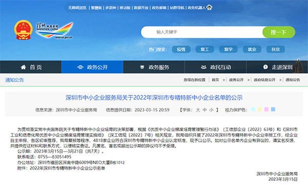 近日,深圳市中小企業服務局公示了《關于2022年深圳市專精特新中小企業名單》,慧靈科技(深圳)有限公司(以下簡稱“慧靈科技”)經過層層專家評審和綜合評估,從眾多優秀企業中脫穎而出,成功入選2022年深圳市“專精特新”中小企業名單。