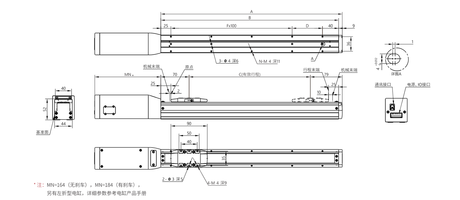 | 有效行程 | 50 | 100 | 150 | 200 | 250 | 300 | 350 | 400 | 450 | 500 | ||||||