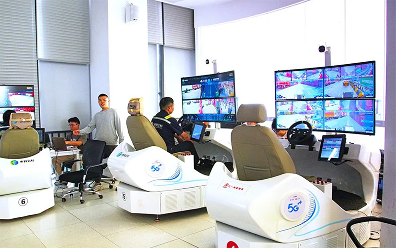 司機們在室內可以一次性操作38臺“無人駕駛集卡”