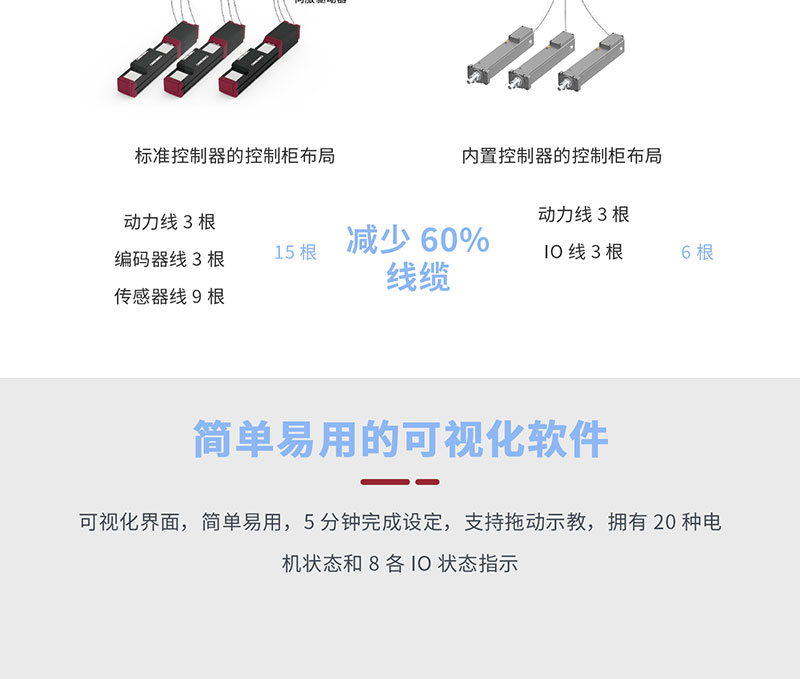 實現多種電缸、滑臺、推桿產品相互組合,快速拼接;擁有易于使用的編程軟件,即使無編程經驗,也能快速進行操作;