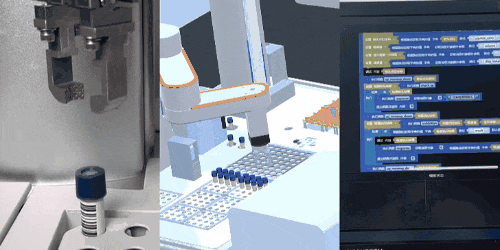 數字孿生的應用:數字孿生允許夾爪和電缸的樂高式拼接,以短時間內完成整套系統的搭建,減少了繁瑣的采購和硬件兼容性問題。