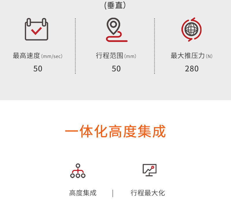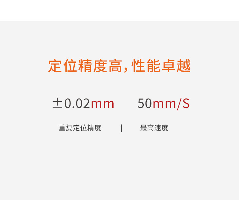 2023年1月10日 Lu, DongWu 智能電缸 0 Z-Mod-EP-35RS-50 首頁 / 智能電缸 / Z-Mod-EP-35RS-50 體積小、推力大 、高精度、性價比高驅動內置,簡單易操作末端抗彎能力強力、位置、速度都可以通過Modbus精準控制長壽命:千萬次循環,超越氣缸控制方式:485、I/O、脈沖 下載3D模型 下載產品手冊 體積小、推力大 、高精度、性價比高驅動內置,簡單易操作末端抗彎能力強力、位置、速度都可以通過Modbus精準控制長壽命:千萬次循環,超越氣缸控制方式:485、I/O、脈沖 下載3D模型 下載產品手冊 產品描述 資料下載 產品描述 Z-Mod-EP-35RS-50 核心參數 1-2mm 280N? 導程 最大連續推壓力 50mm ? ? ? ? ? ? ? ? ? ? ? ? ? ?±0.02mm 行程 ? ? ? ? ? ? ? ? ? ? ? ? ? ? ? ? ? ? ? ? ? ? ? ?重復定位精度 *線框尺寸圖 規格參數 型號性能 行程 50mm 導程 1mm 2mm 最大速度 50mm/s 100mm/s 最大連續推壓力 280 150N 最大負載質量 水平:6kg / 垂直:1.5kg 水平:3kg / 垂直:1.5kg 重復定位精度 ±0.02mm 力控精度 ±10% 推桿不旋轉精度 ±1.5° 推桿末端允許力矩 1N·m 整機重 0.8kg 尺寸規格 160*40*86mm 控制方式 I/O控制、485總線控制、脈沖控制(脈沖+方向) 工作電壓 DC24V±10% 額定電流 2A 峰值電流 6A 防護等級 IP40 使用環境 0~40℃,85% RH以下(不結霜) 資料下載 點擊下載產品手冊 點擊下載3D圖 點擊下載運動范圍圖 Z-Mod-EP-35RS-50核心參數 產品詳細參數 行程50mm導程1mm2mm最大速度50mm/s100mm/s最大連續推壓力280N150N最大負載質量水平:6kg / 垂直:1.5kg水平:3kg / 垂直:1.5kg重復定位精度±0.02mm力控精度±10%推桿不旋轉精度±1.5°推桿末端允許力矩1N·m整機重0.8kg尺寸規格160*40*86mm控制方式I/O控制、485總線控制、脈沖控制(脈沖+方向)工作電壓DC24V±10%額定電流2A峰值電流6A防護等級IP40使用環境0~40℃,85% RH以下(不結霜) 產品詳情 相關產品