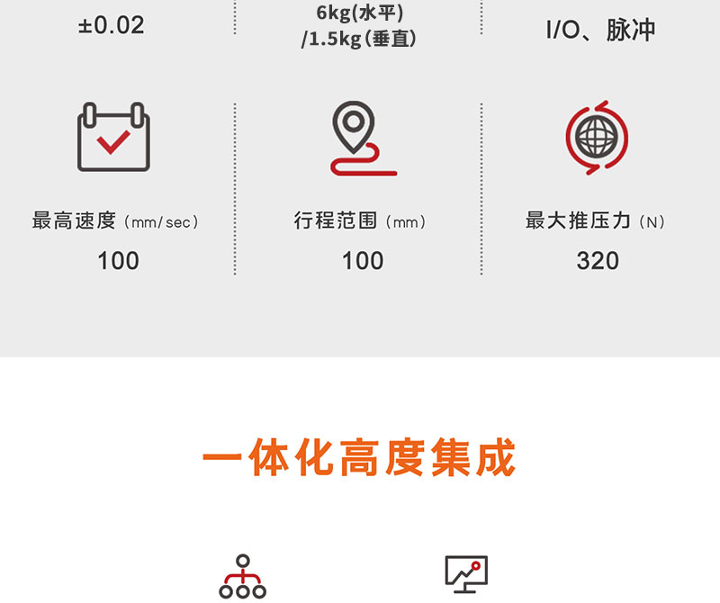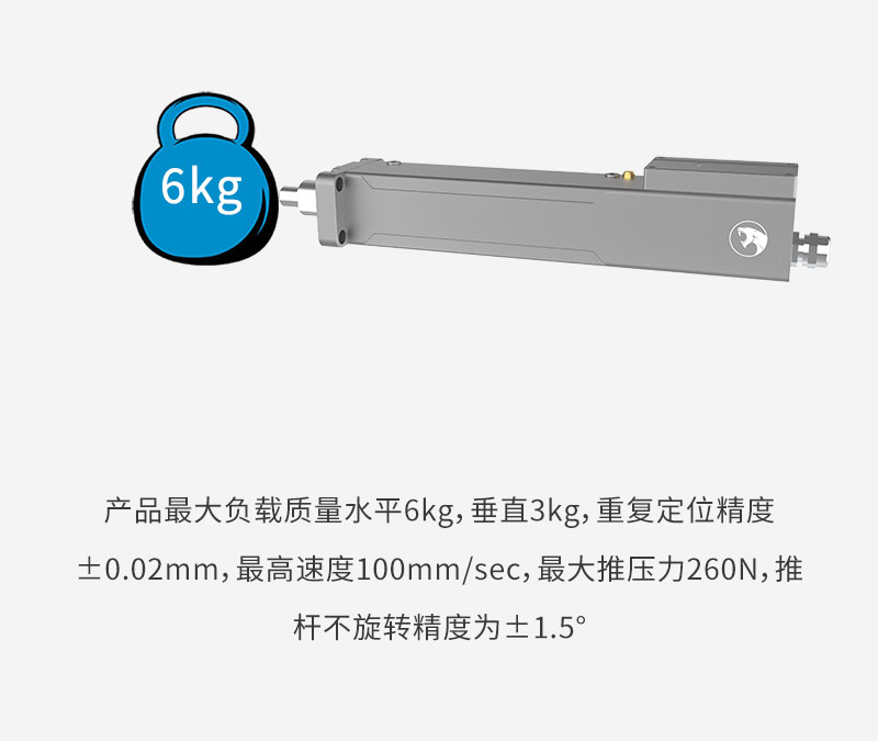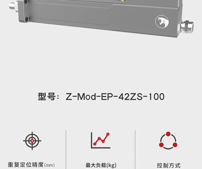 2023年1月6日 Lu, DongWu 智能電缸 0 Z-Mod-EP-42ZS-100 首頁 / 智能電缸 / Z-Mod-EP-42ZS-100 播放視頻 體積小、推力大 、高精度、性價比高驅動內置,簡單易操作末端抗彎能力強力、位置、速度都可以通過Modbus精準控制長壽命:千萬次循環,超越氣缸控制方式:485、I/O、脈沖 下載3D模型 下載產品手冊 播放視頻 體積小、推力大 、高精度、性價比高驅動內置,簡單易操作末端抗彎能力強力、位置、速度都可以通過Modbus精準控制長壽命:千萬次循環,超越氣缸控制方式:485、I/O、脈沖 下載3D模型 下載產品手冊 產品描述 資料下載 產品描述 Z-Mod-EP-42ZS-100 核心參數 2mm 260N? 導程 最大連續推壓力 100mm ? ? ? ? ? ? ? ? ? ? ? ? ±0.02mm 行程 ? ? ? ? ? ? ? ? ? ? ? ? ? ? ? ? ? ? ? ? ? ? 重復定位精度 *線框尺寸圖 規格參數 詳情 行程 100mm 導程 2mm 最大速度 100mm/s 最大連續推壓力 260N 最大負載質量 水平:6kg / 垂直:3kg 重復定位精度 ±0.02mm 力控精度 ±10% 推桿不旋轉精度 ±1.5° 推桿末端允許力矩 二指平動 重量 1.5N·m 整機重量 1.5kg 尺寸規格 296*42*65mm 控制方式 I/O控制、485總線控制、脈沖控制(脈沖+方向) 工作電壓 DC24V±10% 額定電流 2A 峰值電流 6A 防護等級 IP40 使用環境 0~40℃,85% RH以下(不結霜) 資料下載 點擊下載產品手冊 點擊下載3D圖 點擊下載運動范圍圖 Z-Mod-EP-42ZS-100 核心參數 產品詳細參數 行程 100mm 導程 2mm 最大速度 100mm/s 最大連續推壓力 260N 最大負載質量 水平:6kg / 垂直:3kg 重復定位精度 ±0.02mm 力控精度 ±10% 推桿不旋轉精度 ±1.5° 推桿末端允許力矩 二指平動 重量 1.5N·m 整機重量 1.5kg 尺寸規格 296*42*65mm 控制方式 I/O控制、485總線控制、脈沖控制(脈沖+方向) 工作電壓 DC24V±10% 額定電流 2A 峰值電流 6A 防護等級 IP40 使用環境 0~40℃,85% RH以下(不結霜) 產品詳情 相關產品