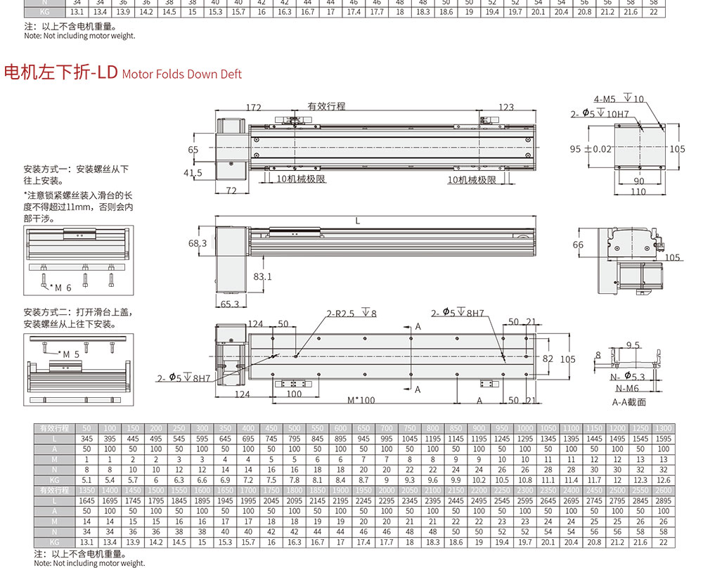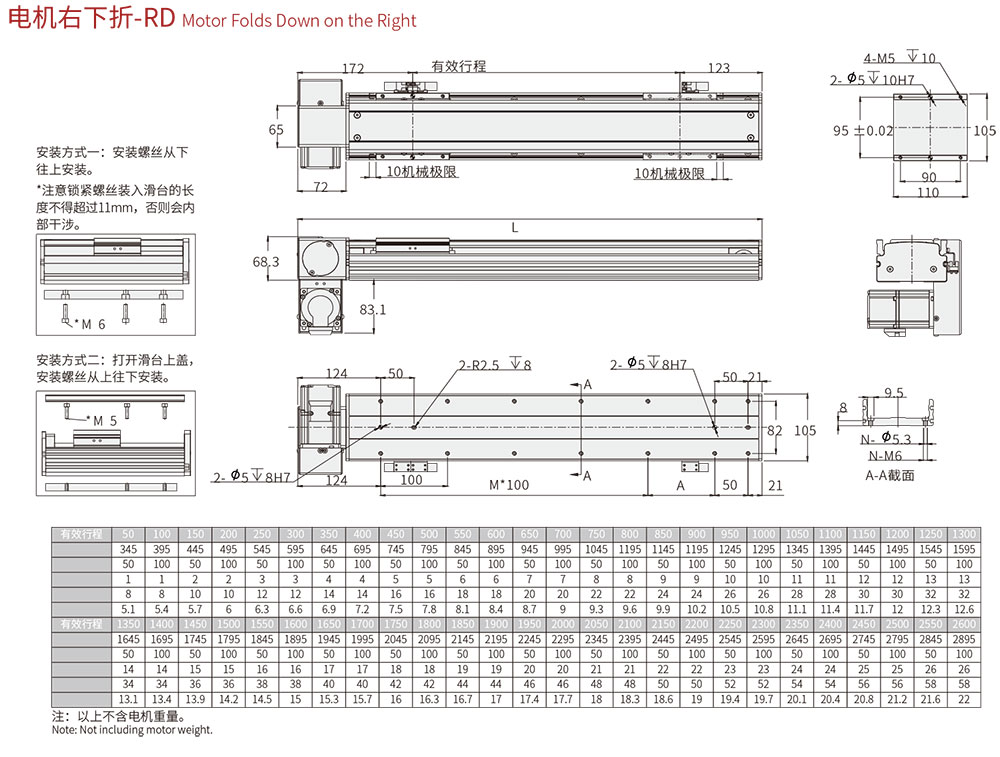 100-2550MM/50行程遞增 |