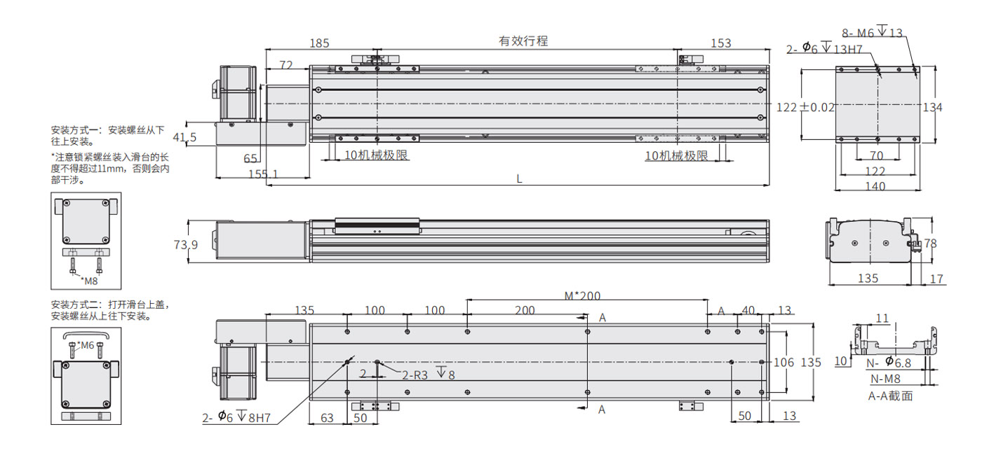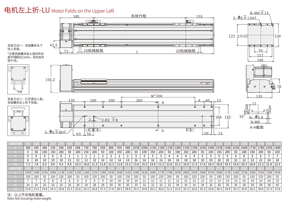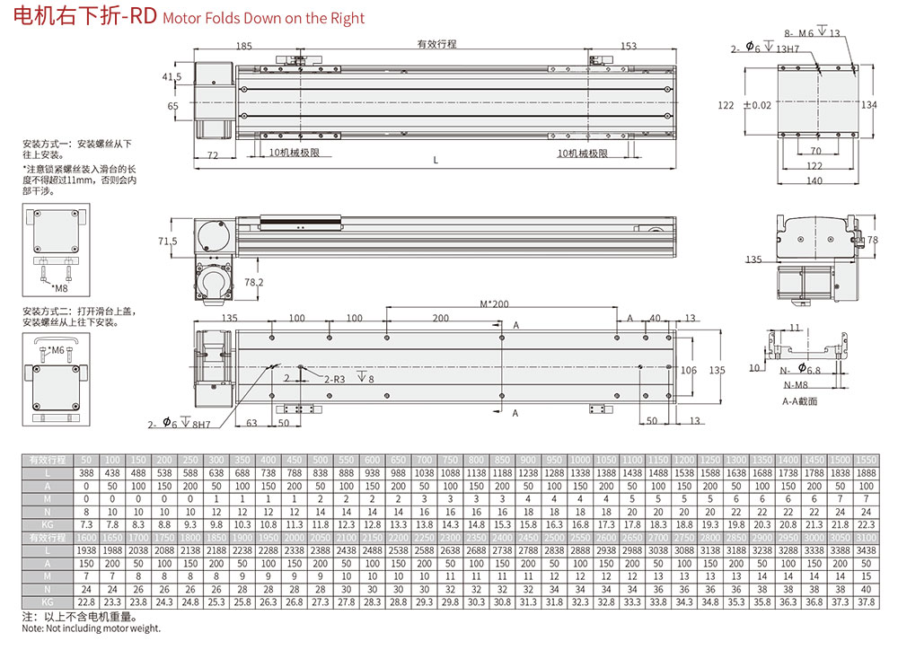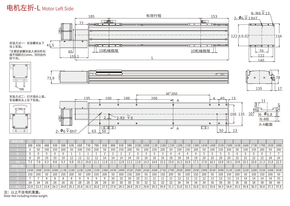 行程范圍 Range of travel(mm)100-3100MM/50行程遞增