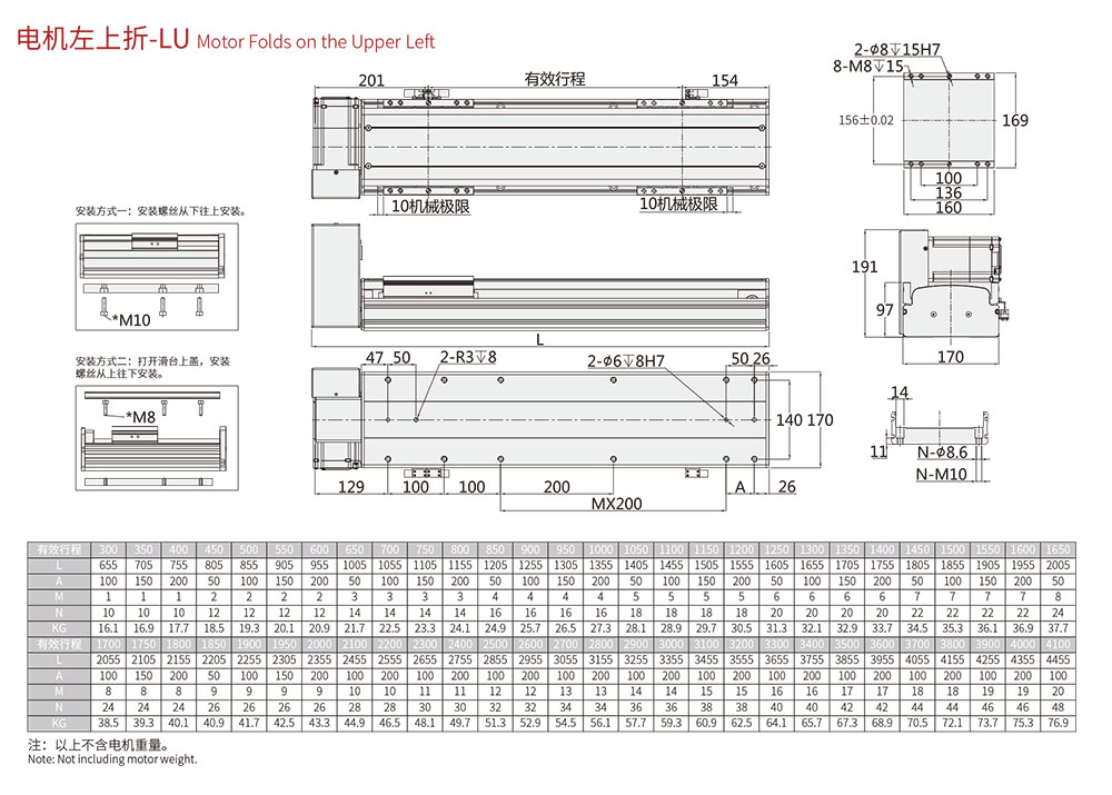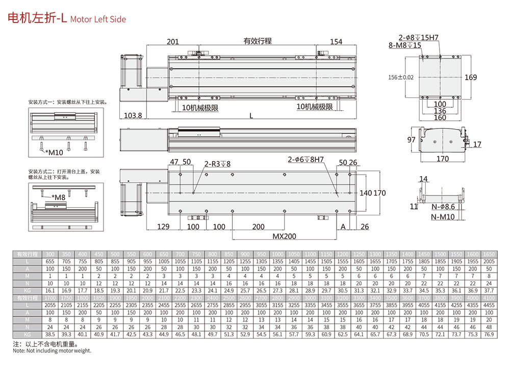 行程范圍 Range of travel(mm) 100-4500MM/50行程遞增
