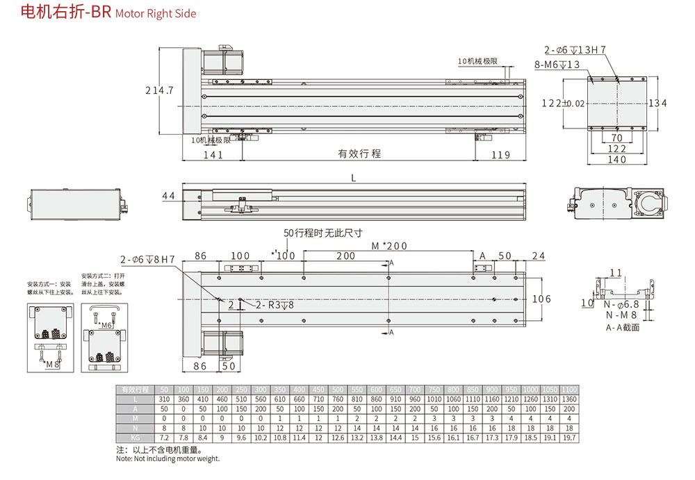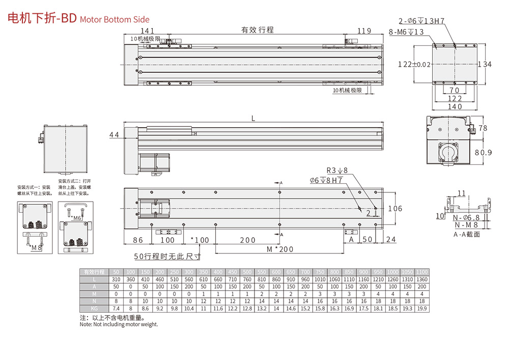 行程范圍 Range of travel(mm)50-1300MM/50行程遞增