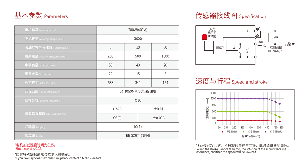 行程范圍 Range of travel(mm) 50-1050MM/50行程遞增