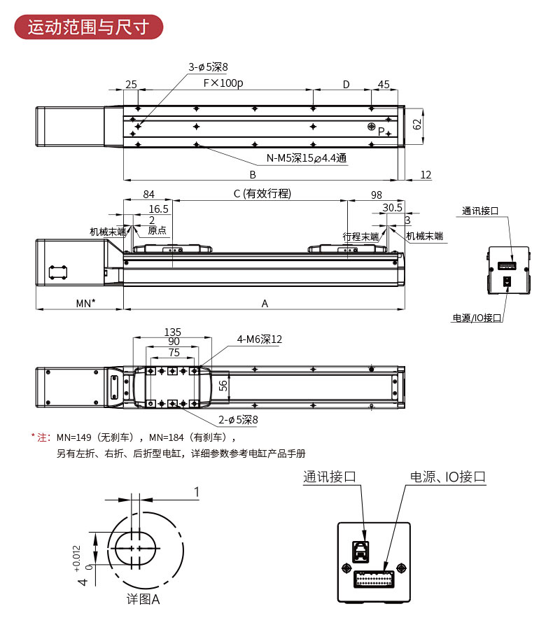 • 行程范圍:50-1100mm(50mm間隔)